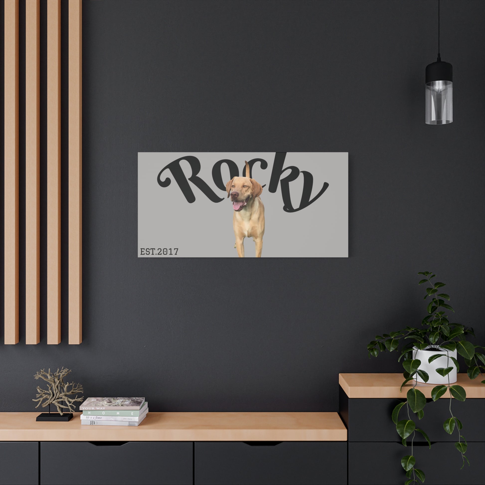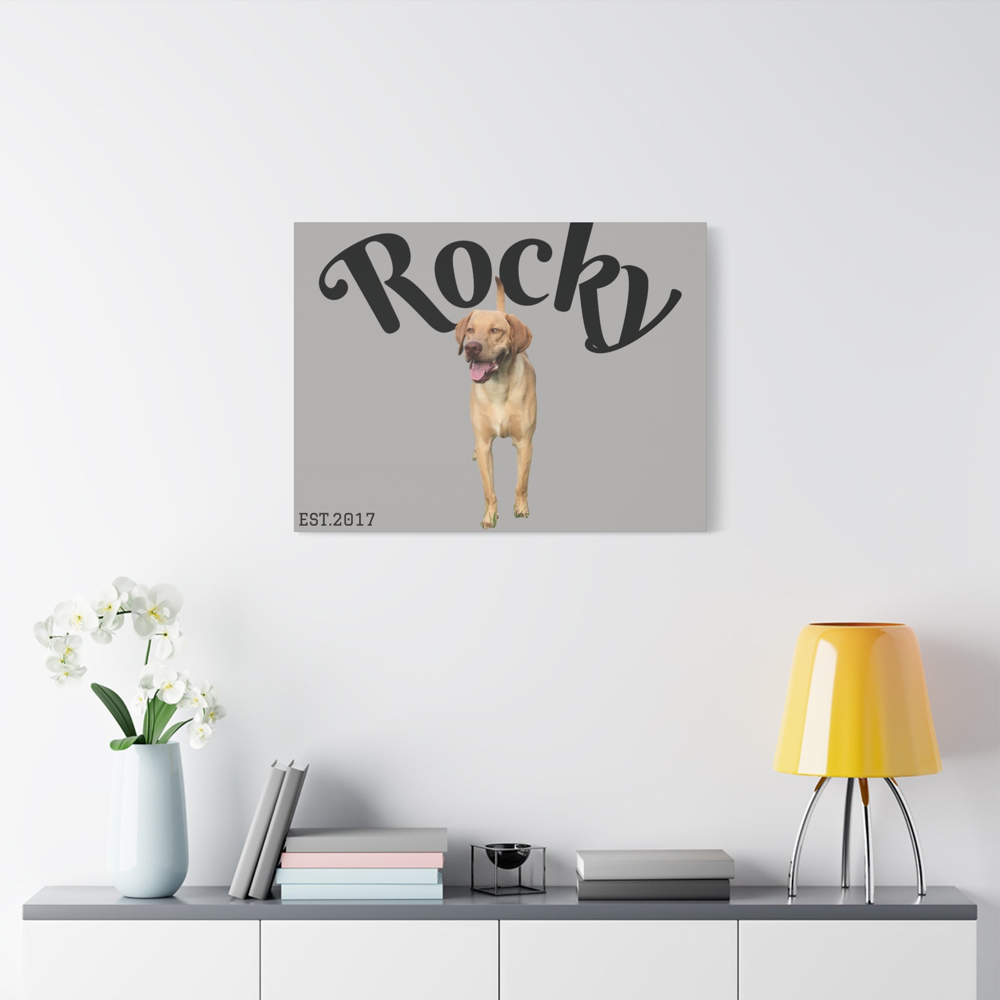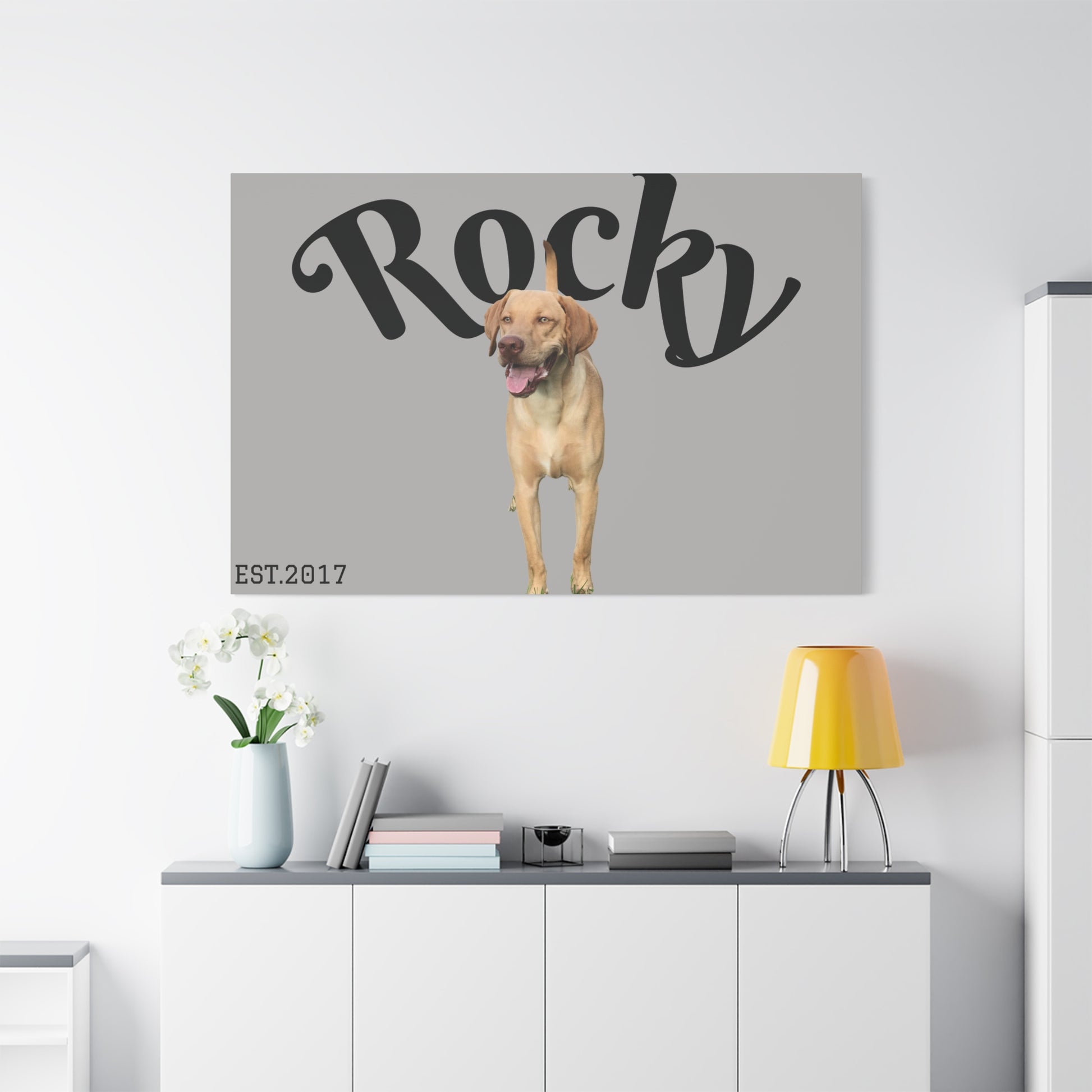 Turn your favorite photo into a stunning piece of wall art. This personalized canvas features your pet’s name in beautifully curved text above or behind their image, with their birth year and “Est.” detail subtly placed in the lower left corner.